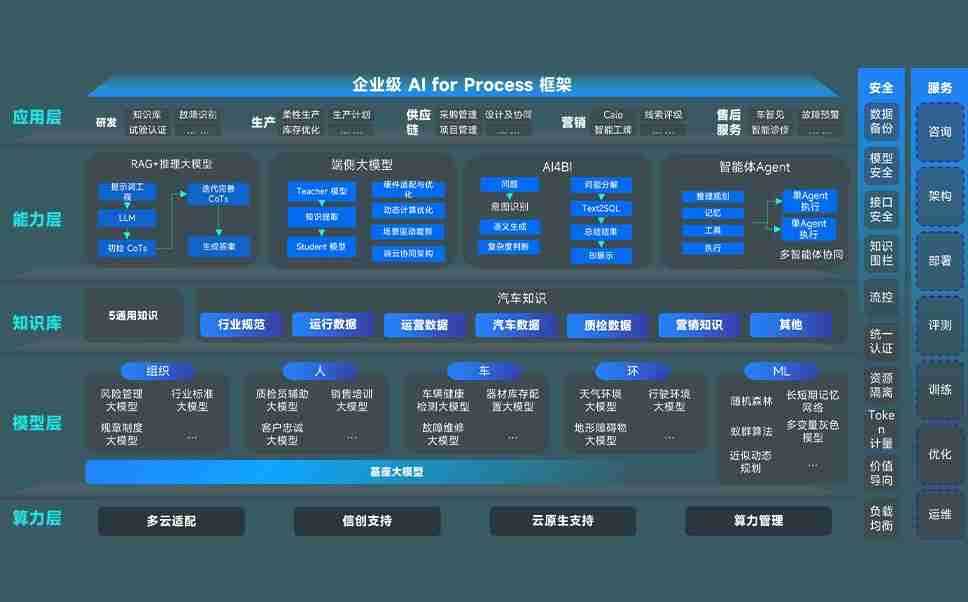 先锋娱乐问学智车解决方案是一套基于AI技术的汽车行业智能化系统,,,,覆盖从底层算力到顶层AI应用的全栈方案。。方案由算力层、、、模型层和应用层组成:算力层,,方案支持多种一体机配置,,具备云端灵活部署、、多云适配以及动态优化计算资源的能力;模型层,,先锋娱乐问学平台版提供了企业级AI应用一站式构建与管理平台,,支持基于后训练强化技术的汽车企业专属模型的训练、、、评测和运营;应用层,,先锋娱乐问学DeepSeek版提供包括超级员工、、智能招采、、、智能营销、、、智能客服、、AI for BI等一系列解决方案,,,可助力汽车行业实现数字化转型,,让管理更智能、、、、响应更敏捷。。。